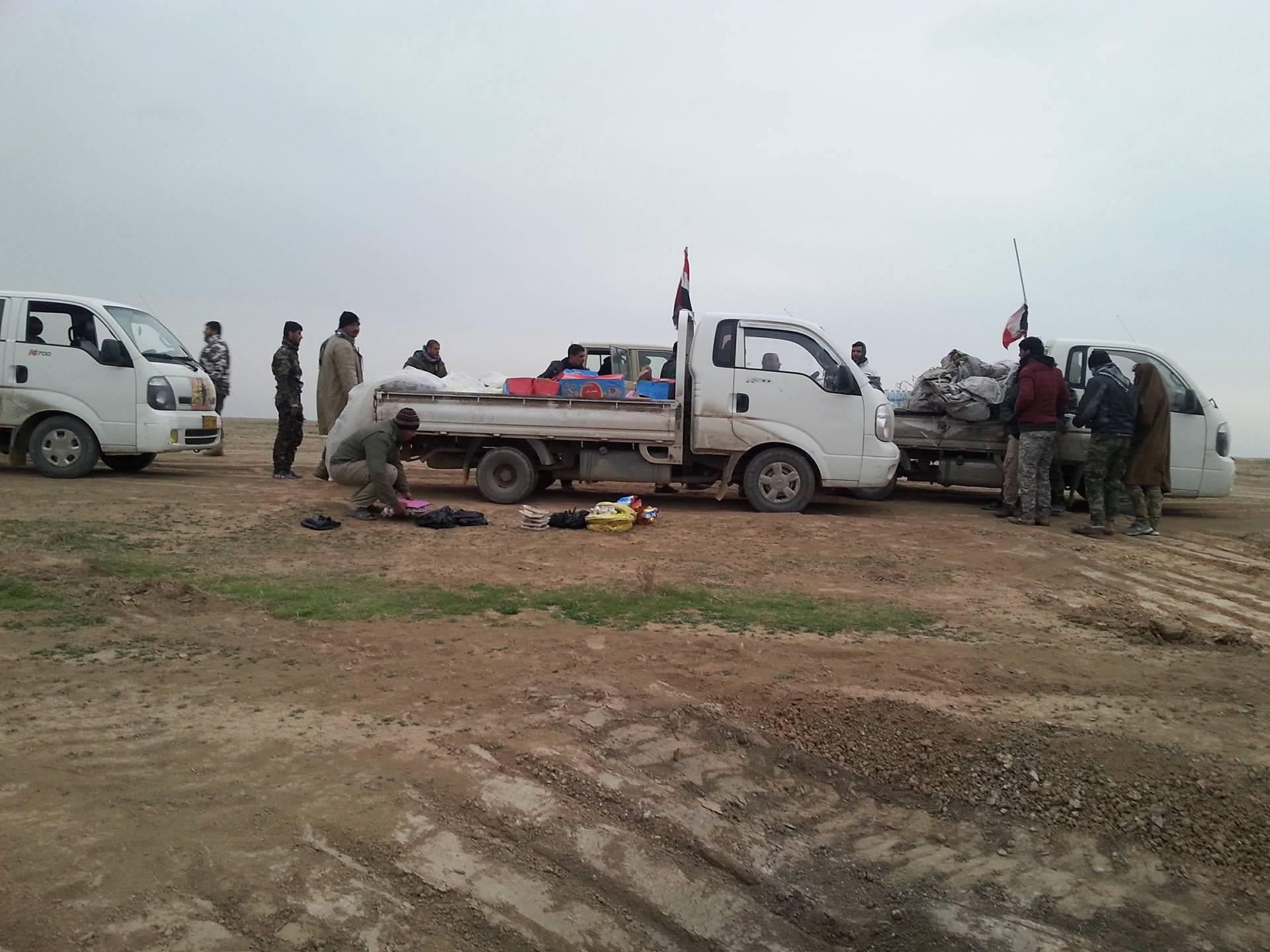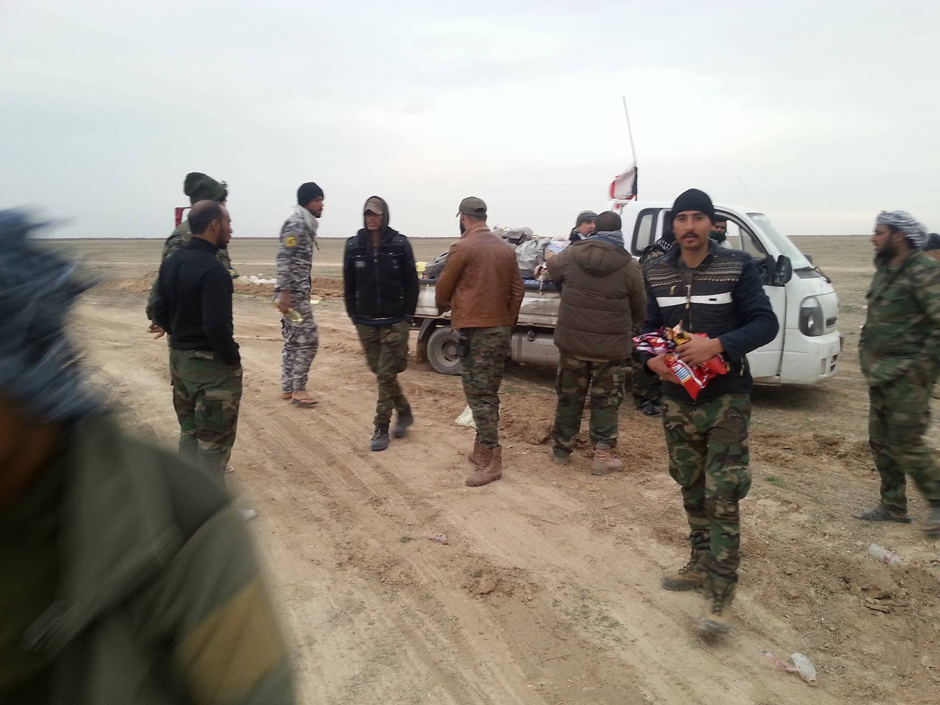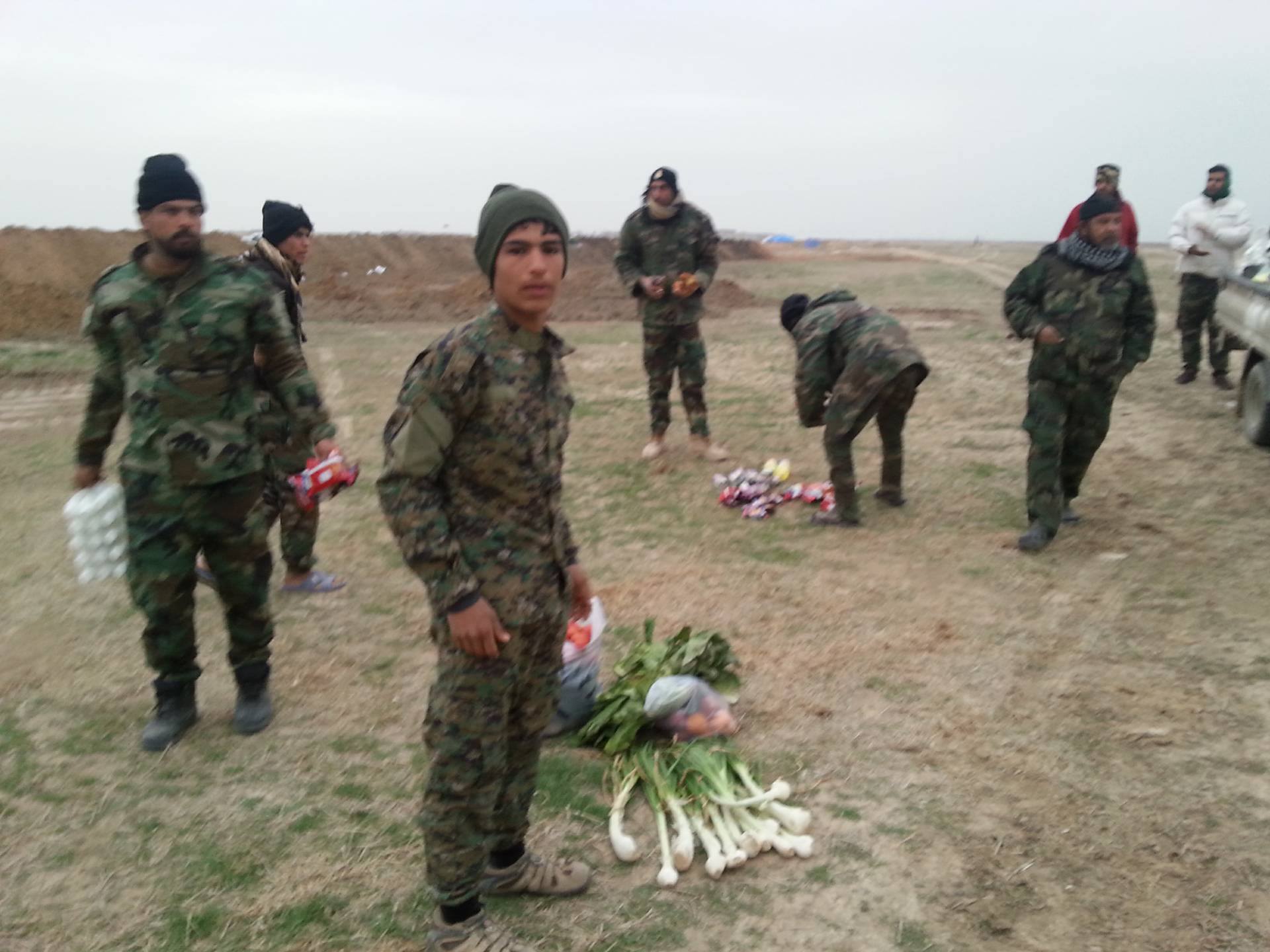 توجهت الحملة من الحلة باتجاه الموصل في الساعة الرابعة صباح يوم الخميس المصادف الثاني من شهر آذار عام 2017 .. وقد عقدنا العزم على التوجه للقرى المحيطة بتلعفر والتي كنا قد توجهنا اليها قبل اسابيع ايضا ، فسلكنا الطريق الجديد المؤدي لتل عبطة ووصلنا محور تلعفر والقرى المحيطة به الساعة الخامسة مساء يوم الخميس وتوجهنا مع فريق أمني تابع لكتائب حزب الله البطلة لساتر في منطقة خربة الجحش وبدأنا بتوزيع المواد الغذائية والمﻻبس على نقاط الساتر التي ﻻيمكن احصاءها ، وخلال ذلك استطلعنا اخبار اﻻنتصارات من المجاهدين فمنهم المجاهد حسين جميل فاضل من مدينة كربلاء المقدسة تحدث قائلا : نحن الفوج الثاني كتائب حزب الله وقد مسكنا هذا الساتر منذ خمسة ايام وهذه المناطق هي خربة الجحش وعين طلاوي والشريعة .