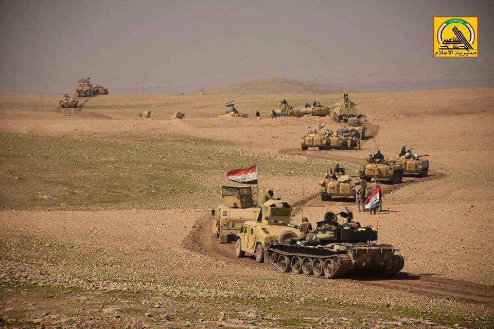 8_ الحشد الشعبي: الحشد الشعبي اللواء 26 و الفرقة المدرعة التاسعة يقطعان الطريق الرئيسي الذي يربط ناحية بادوش بالجانب الايمن للموصل .