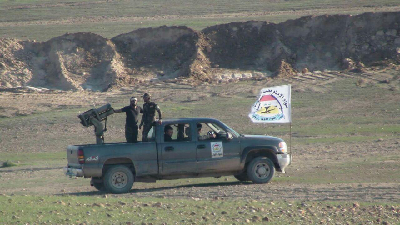 14_ الحشد الشعبي : طيران الجيش يفجر عجلة مفخخة حاولت إعاقة توغل القطعات المحررة في ناحية بادوش .