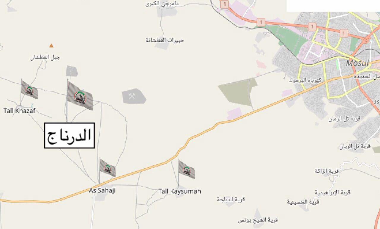 23_ الحشد الشعبي : الحشد الشعبي اللواء 42 يحرر قرية الدرناج ويرفع العلم العراقي فوقها غرب الجانب الايمن للموصل.