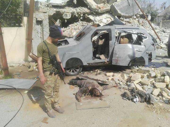 19- الحشد الشعبي : الحشد الشعبي اللواء 42 يقتل 5 انغماسيين اثناء عمليات اقتحام وتطهير قرية درناج غرب الجانب الايمن للموصل .