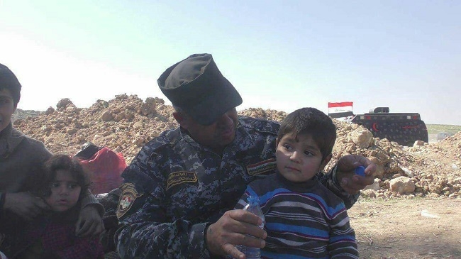 استقبلت قوات الحشد الشعبي المئات من العوائل النازحة من ناحية بادوش هربا من داعش ، موفرةً لهم الإغاثة الطبية والغذائية في مركز الكفيل لإغاثة النازحين غربي الموصل .