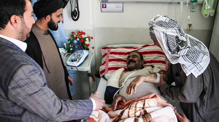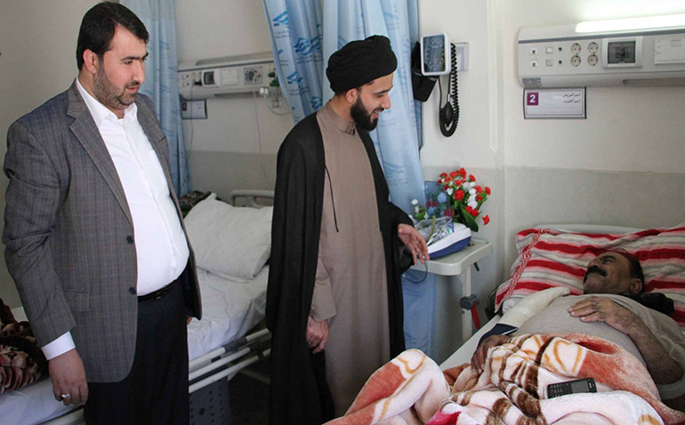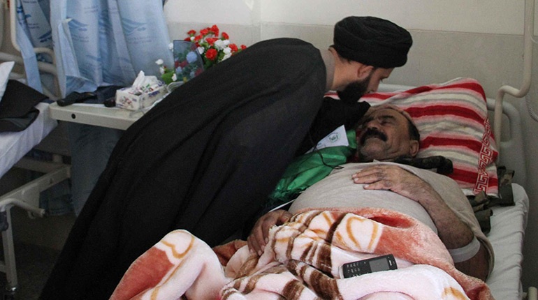 وأضاف "ان الوفد كرم المقاتل الجريح ببعض الهدايا من الحرم الحسيني الشريف, وقدم له منحة مالية".