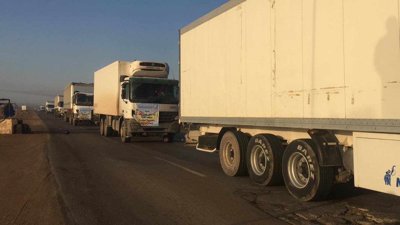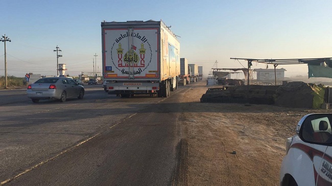اكبر قافلة مساعدات تسيرها العتبة الحسينية لاغاثة النازحين في ايمن الموصل