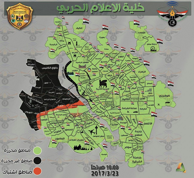 آخر التطورات الميدانية لعمليات قادمون يا نينوى حتى الساعة 15:55 الخميس 23 ـ 03 ـ 2017