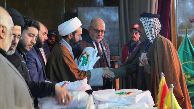 حيث أُقيم حفلٌ كبيرٌ حضره وفدٌ رفيع المستوى من العتبتين المقدّستين الحسينية والعباسيّة وشهد حضور عددٍ من الشخصيّات الدينيّة والسياسيّة وممثّلين عن فصائل المقاومة في الحشد الشعبيّ.
