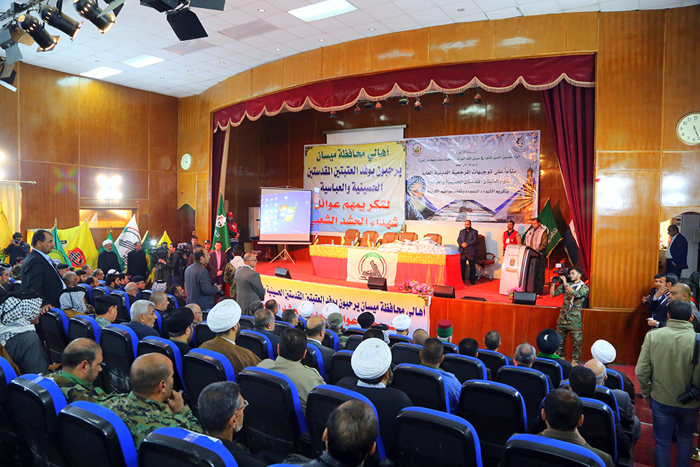 تتواصل العتبةُ العبّاسية المقدّسة متمثّلةً بقسم الشؤون الدينية فيها بتكريم عوائل وذوي شهداء الحشد الشعبيّ المقدّس، ويُعدّ هذا التكريم ضمن برنامجها الذي أعدّته لهذا الغرض والذي انطلق متزامناً مع فتوى الجهاد الكفائيّ للدفاع عن العراق ومقدّساته، ومنذ أن بدأت الدماء الطاهرة من هذه الثلّة المؤمنة تسقي أرض العراق وتُبعِدُ عنه شرّ الأشرار من العصابات التكفيرية والإرهابية، وكانت محافظة ميسان من المحافظات الأولى التي لبّى أبناؤها نداء المرجعية وهبّوا لنصرة العراق وإنقاذه حالها حال باقي المحافظات العراقية.