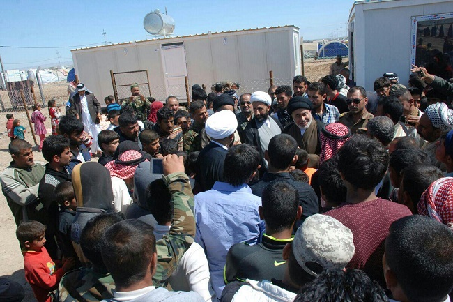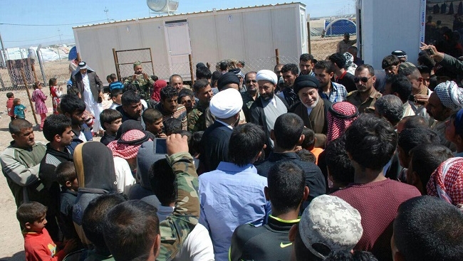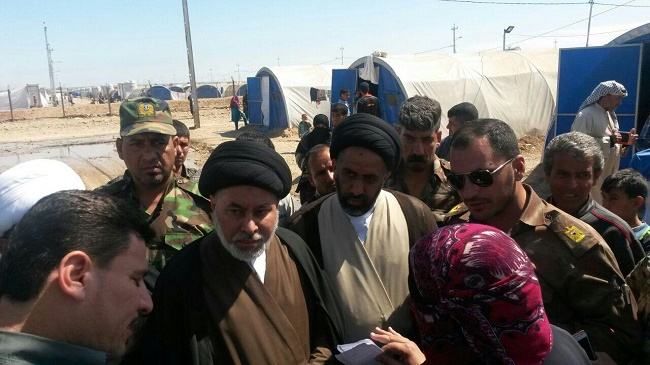 تلبية لنداء المرجعية الدينية العليا بإغاثة ومساعدة النازحين من أهالي الموصل الجانب الأيمن وفقنا الله مع وفد من أهالي الحلة "الحمزة " وأهالي " بغداد"( حي العامل-والبنوك )وبالتعاون مع لجنة الإغاثة التابعة لمكتب السيد السيستاني(دام ظله) بزيارة مخيم النازحين في القيارة ومخيم الجدعة وكان باستقبال الوفد سماحة السيد مثننى الحكيم عضو لجنة الاغاثة التابعة لمكتب المرجعية الدينية العليا .
