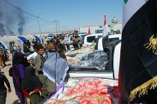 يذكر أن المرجعية الدينية العليا ناشدت المواطنيين في خطبة الجمعة ( 10 من اذار 2017 ) بإغاثة النازحين كل حسب استطاعته وجاء بالخطبة " نظراً لتكاثر النازحين من مناطق القتال وعدم كفاية الإمكانات اللّازمة لهم نناشد المواطنين الكرام في مختلف المحافظات أن يساهموا حسب المستطاع في توفير الاحتياجات الضروريّة لهؤلاء الإخوة والأخوات ويخفّفوا بذلك من معاناتهم، فإنّه من أفضل القربات وتقتضيه ضرورة التلاحم والتكاتف بين أبناء الوطن الواحد في الأزمات " .