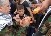 وفي نفس اليوم وصلت ايضا قافلة أهالي الحيدرية في النجف الاشرف وكانت باشراف الشيخ رزاق العيساوي وتم توزيعها على الاخوة النازحين في المخيمات والاحياء المحررة .