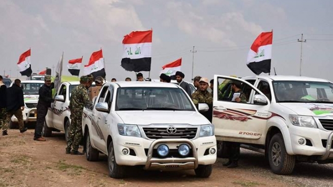 هيئة اهالي سوق الشيوخ لدعم الحشد الشعبي توزع المؤونة والمساعدات على الابطال في ساحات القتال