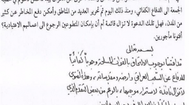 فتوى جديدة لسماحة السيد السيستاني دام ظله بشان فتوى الدفاع عن الشعب العراقي