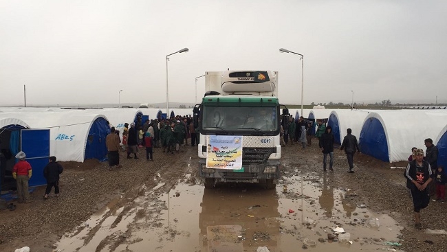 مكتب المرجع الحكيم یطلق قافلة مساعدات صوب الموصل لإغاثة نازحيها