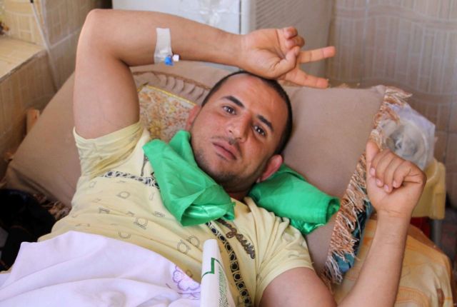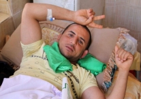 المجاهد الجريح :- ناجي خلف ضيدان احد مجاهدي لواء الطفوف والذي اصُيب للمرة الثالثة أثر تعرض للعدو في قاطع عمليات تحرير قادمون يا نينوى – قرية حجف.