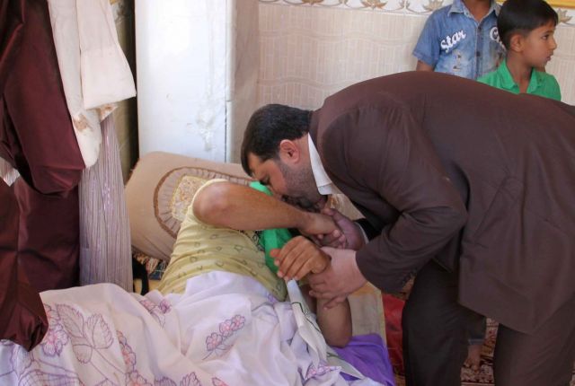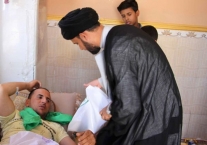وفد الامانة العامة للعتبة الحسينية يزور احد جرحى الحشد الشعبي