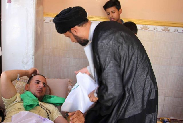 في زيارة تفقدية قامَ بها كل من مكتب علاقات لواء علي الاكبر عليه السلام وشعبة رعاية ذوي الشهداء والجرحى في العتبة الحسينية المقدسة وشعبة السادة الخدم لأحد جرحى الحشد الشعبي- في كربلاء المقدسة ولتقديم يد العون والمساعدة حتى تماثله للشفاء بأذنه تعالى.