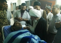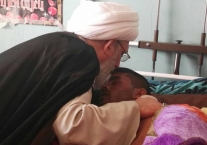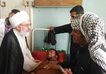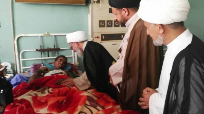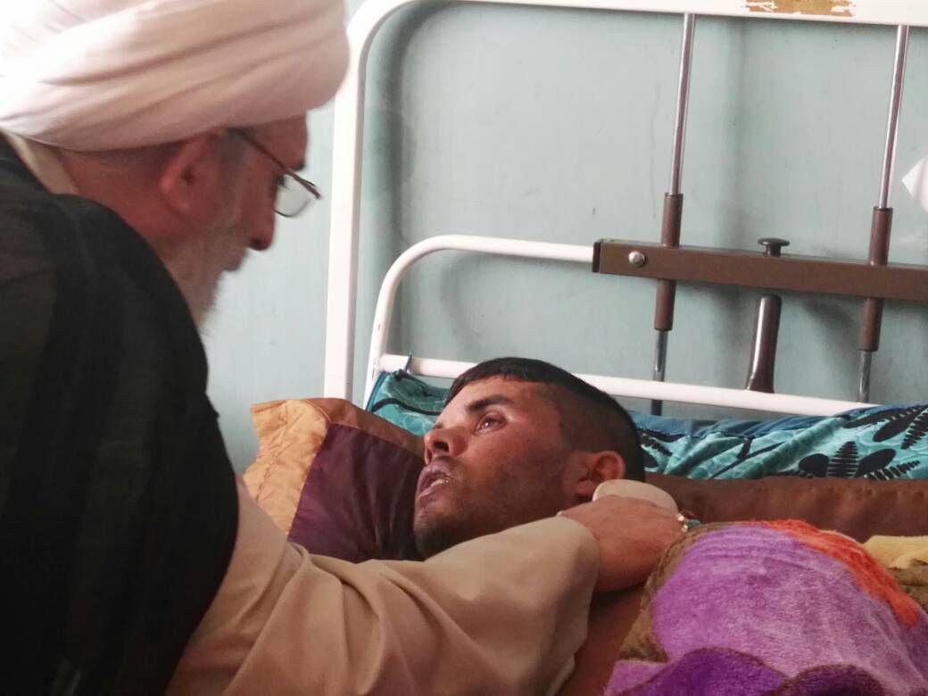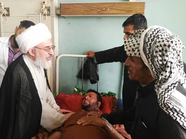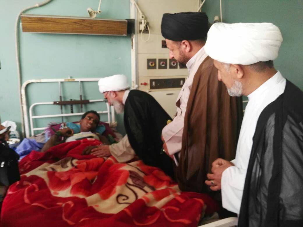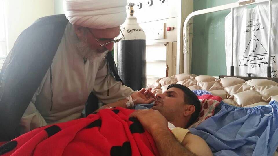 تفقد وفدا من مكتب سماحة المرجع الديني الاعلى السيد السيستاني دام ظله برئاسة سماحة حجة الإسلام والمسلمين الشيخ طارق البغدادي دام عزه الجرخى الراقدين في مدينة الطب بالعاصمة بغداد .