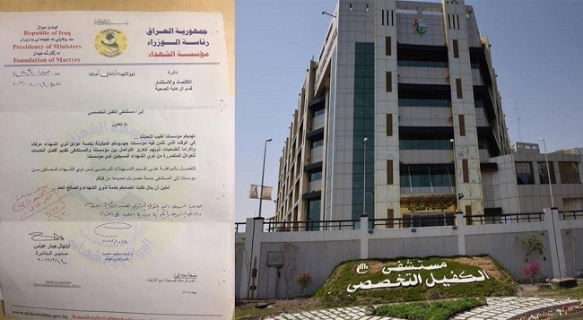مستشفى الكفيل التخصّصي يخفض أجوره لفئة مؤسّسة الشهداء العراقيّين..