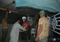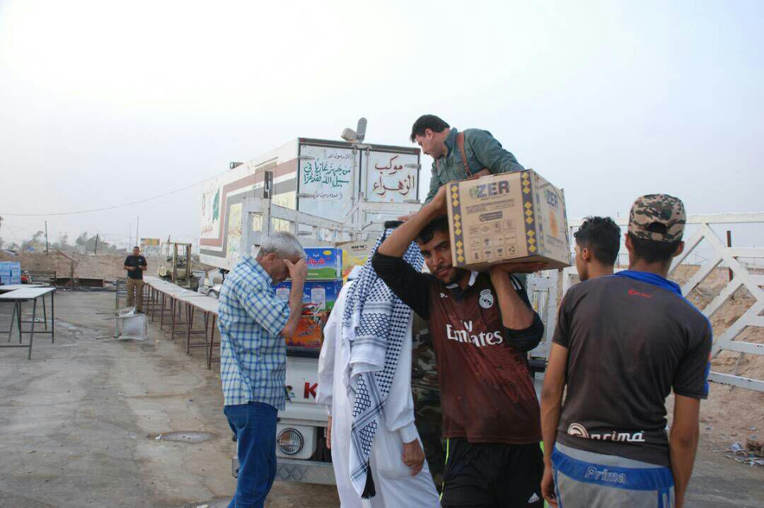 قام الوفد بايصال وجبات افطار رمضانية وسحور خمسمائة طبق جاهز مع سلة مقاتل ومواد غذائية متنوعة(طرية وجافة) . وكميات من المياه وكميات من الفاكهة والخضر والتمور والعصائر والسكائر وكميات من الملابس الداخلية) ومساعدات مالية مقدمة من مكتب المرجعية الدينية العليا وكذلك تبرعات أهالي حي العامل والبنوك .