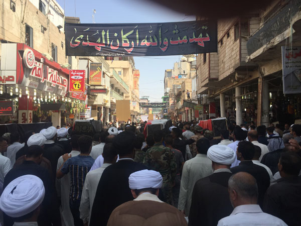شيعت الحوزة العلمية المباركة في النجف الأشرف، الأربعاء، سماحة الشيخين الشهيدين مقصد الجبوري وعلي المالكي (رحمهما الله) والشهداء الآخرين من المدافعين من الحشد الشعبي المبارك.