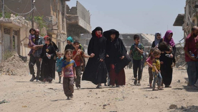 5_ مصدر عسكري : القوات المشتركة استقبلت اكثر من 140 عائلة نازحة من شارع الفاروق في الموصل القديمة .