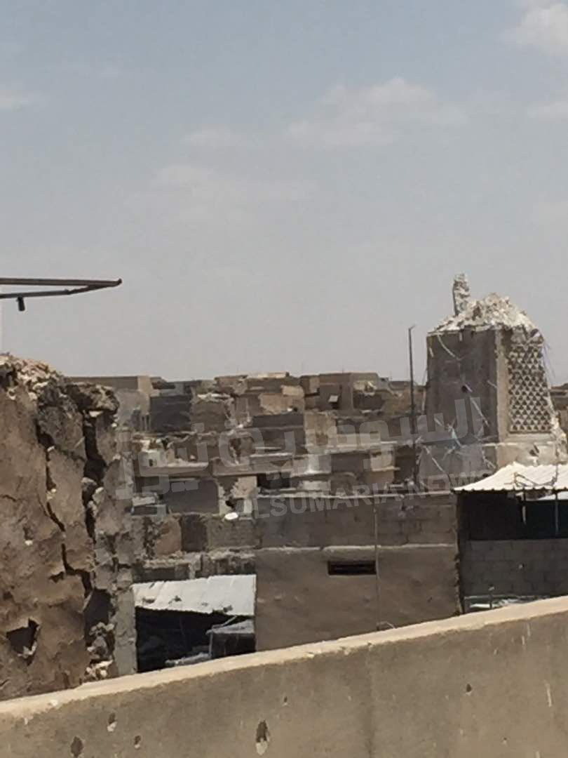 ما تبقى من منارة الحدباء بعد تفجيرها من قبل عصابات داعش الاجرامي
