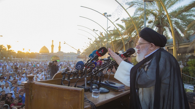 خطيب صلاة العيد من كربلاء يشيد بالانتصارات ويتحدى العالم بان يأتي له بنموذج مشابه للحشد الشعبي