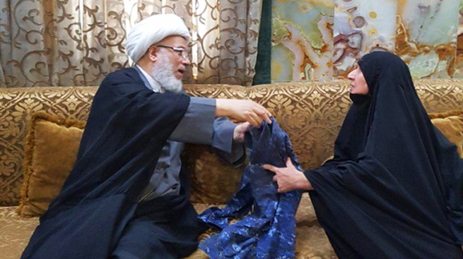 أقدم ممثل المرجعية الدينية العليا في كربلاء المقدسة الشيخ عبد المهدي الكربلائي على تقبيل رتبة الشهيد النقيب محمد قاسم عبد الحسين السعيدي الذي استشهد في المعارك ضد تنظيم داعش الارهابي.