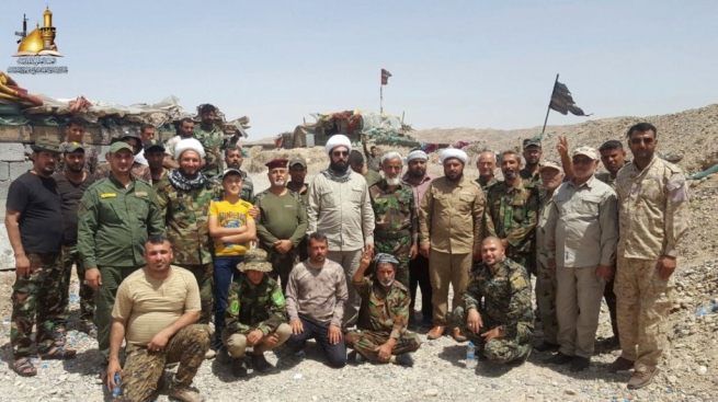 وتابع ” ثم انتقل مبلغو اللجنة الى محور الشرطة الاتحادية تارة يؤدون دورهم الإرشادي واخرى يؤدون دورهم الانساني، وسط الإشادات من قبل المقاتلين والقادة الميدانين بطلبة المرجعية و حوزة النجف المستمرون في التواجد في أوساطهم بل يعقدون الهمم بتواجد العمامة بينهم ويشيمون المقاتلين بشن الصولة بتواجد العمامة بينهم حتى سيطروا غروب هذا اليوم على جامع الأغوات وجامع الباشا وبعض الأماكن المحيطة والمجاورة لهما وبعض العمارات التي كانت مجمع ومخبئ للدواعش”.