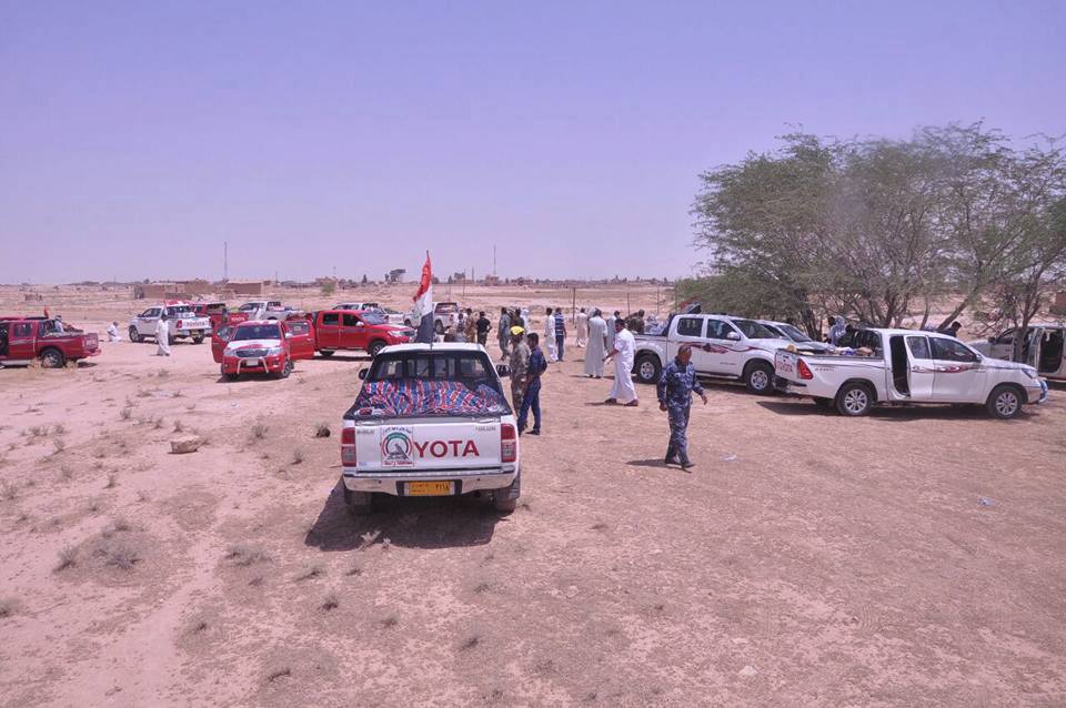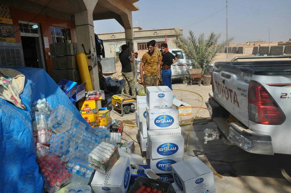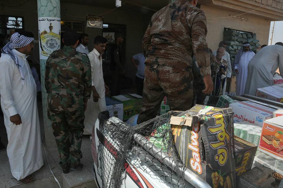 اهالي محافظة واسط ناحية بتوجيه ودعم امام جمعة ومسجد ناحية الأحرار السيد احمد الشوكي مع المجاهدين في قاطع الحضر وأطراف تل عبطة والشريط الحدودي مع سوريا رغم قساوة الحر الشديد إخوتنا المجاهدين من أبناء الأحرار في فرقة العباس ع القتالية ثابتين بالدفاع عن البلد والقائد الشجاع السيد عباس الشوكي في فرقة الإمام علي العتبة العلوية المقدسة. اللواء ٢١ بدر الظافر في قاطع الحضر وكتائب حزب الله في مدينة الحضر .تم بعون الله إيصال ماتيسير من مواد غذائية وفواكه وبعض المستلزمات من مولدات كهربائية لغرض انارة نقاط الحراسة للمتطوعين.الشكر والتقدير للسيد عمار شبر اللجنة الأمنية في هيئة الحشد الشعبي في واسط لتسهيله إجراءات عودة خدام الحملة .العمليات المشتركة من خلال سيطراتها المعرقل الرئيس لوصول وعودة حملات الدعم اللوجستي للمجاهدين .