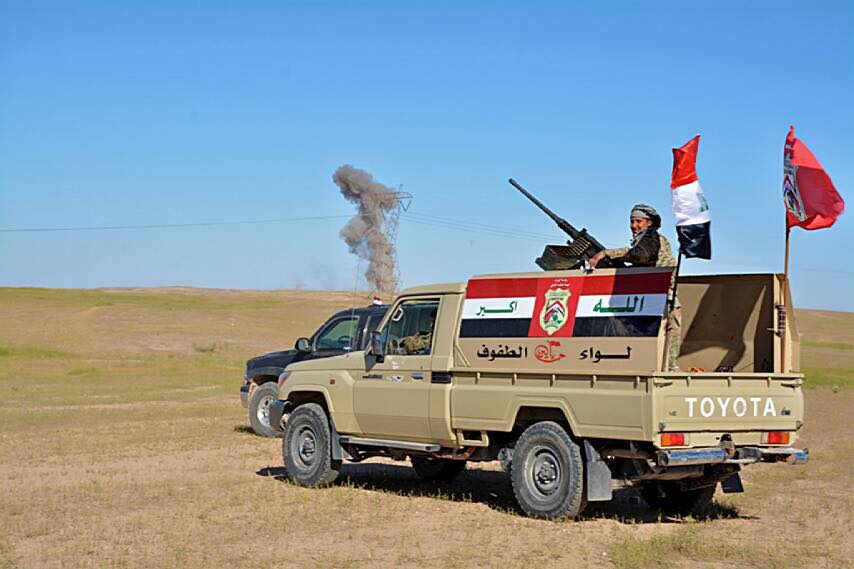 وذكر اعلام الحشد الشعبي نقلا عن معاون آمر اللواء احمد نصر الله انه:" خلال الساعات الأولى من صباح هذا اليوم تمكنا من صد تعرض على قاطع اللواء على الحدود العراقية السورية وعن طريق الإسناد المدفعي للواء وتم تدمير مفرزة للإرهابيين إضافة الى عجلتين أحداهما تحمل سلاح (23) ملم والأخرى مفرزة هاون".