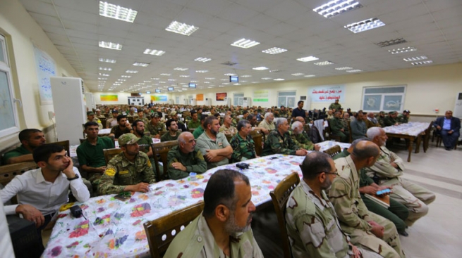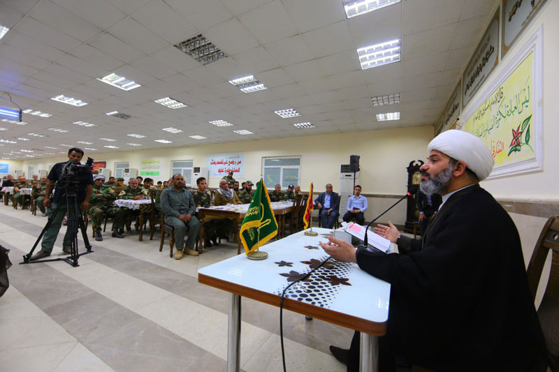 التقى مدير العتبة العسكرية المقدسة سماحة الشيخ ستار المرشدي في مضيف الامامين العسكريين (عليهم السلام) بالمجاهدين من قوات الامام علي الهادي (عليه السلام) المكلفة بحماية مرقد الامامين العسكريين (عليهم السلام) وأعرب سماحة الشيخ عن شكره وامتنانه وتقديره لجهود القوات المكلفه بحماية مرقد الامامين العسكريين (عليهم السلام) وزائري المرقد المقدس قائلآ (نحن نشكركم على جهودكم التي قدمتموها وعلى الرغم من كل الصعوبات التي تواجهكم فنحن مقصرون بحقكم فانتم ثابتون في اداء عملكم وامانتكم رغم عدم تزويدكم بالرواتب وانا شخصيا أشكركم والله شاهد علي أني أشهد لكم بشهادتين شهادة في الدنيا اتكلم عن بطولاتكم وخدمتكم في كل مكان وشهادة في الاخرة اقف في محضر الامام الهادي والامام الحسن العسكري (عليهما السلام) واشهد عن خدمتكم لهم واخلاصكم في العمل, وبين سماحته ان الحرب على الارهاب تتطلب تظافر الجهود واليقظة والحذر.