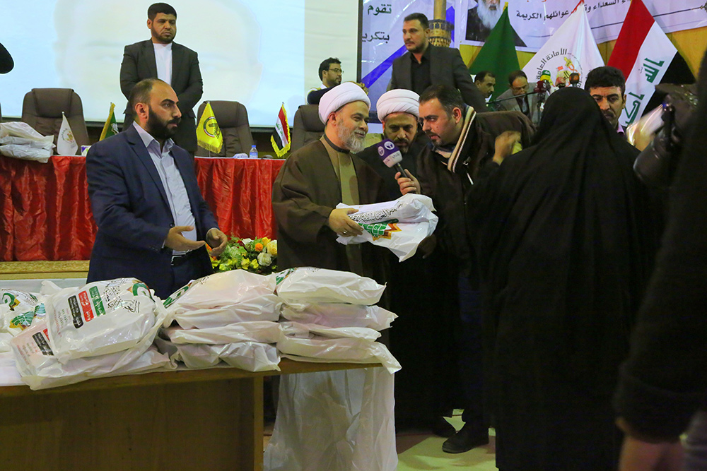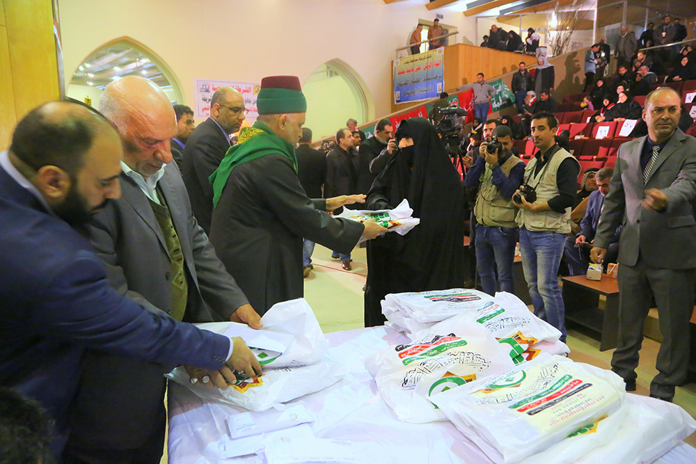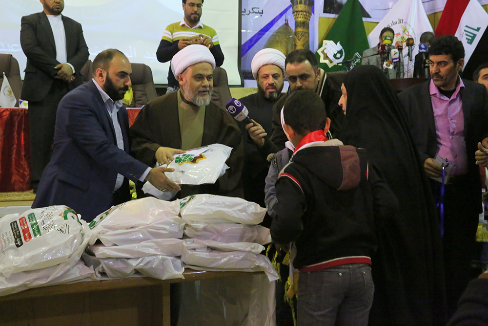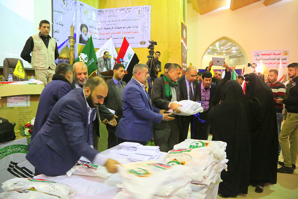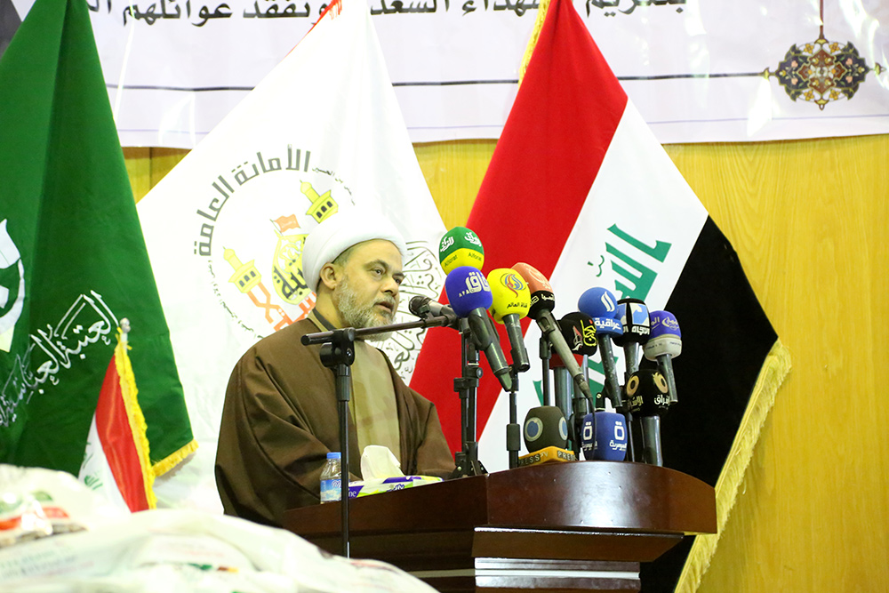 وأضاف: "الكلمة ليست لنا وإنّما للعوائل الكريمة، لآباء وأمّهات الشهداء وتلك البيوت الطاهرة التي أنجبت مثل هؤلاء الشباب بتلك الروح الفدائية والإقدام والمروءة والغيرة، الذين بذلوا ما أوزعهم الله تبارك وتعالى بحفظه وصيانته في سبيل الله، منذ سنة يتجوّل إخوانكم خَدَمَة الإمام الحسين وأخيه أبي الفضل العباس(عليهما السلام) في كلّ مدن العراق، ولكن لا يستطيعون أن يستوعبوا ويصلوا الى بيت كلّ عائلة شهيد، ولو أنّه يحصل ذلك فالشهداء وعوائلهم هم أصحاب الفضل، وهذه الهديّة المتواضعة ماديّاً والكبيرة معنويّاً تأتيكم من جنّة كربلاء من حرم سيّد الشهداء وقمر العشيرة(عليهما السلام)، والحمد لله تواصلنا حتى الآن مع (90%) تقريباً من عوائل الشهداء في كافة أنحاء العراق".