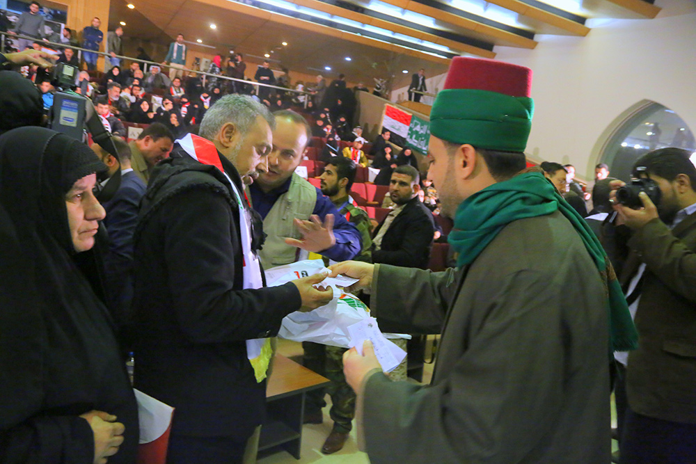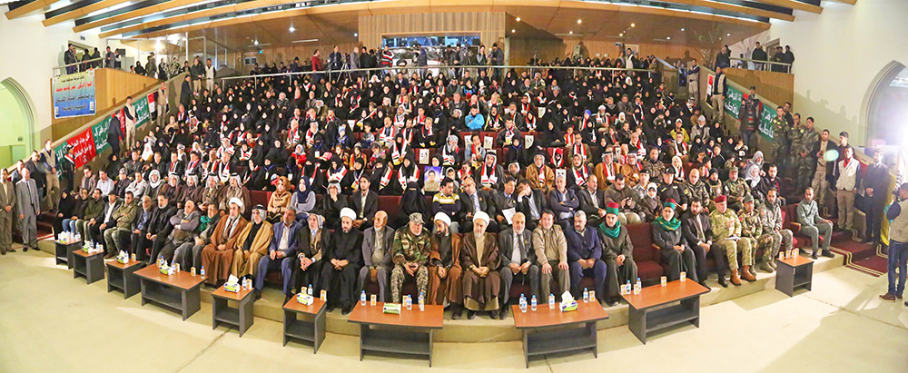 بعدها تمّ عرضُ فلمٍ وثائقيّ وإلقاء أبياتٍ شعرية جسّدا بطولات أبناء القوّات الأمنية والحشد الشعبيّ في المعارك التي يخوضونها مع قوى الشرّ والضلال، قام بعد ذلك الشيخ ماجد السلطاني من قسم الشؤون الدينية في العتبة العباسيّة المقدّسة ببيان وتوضيح آلية توزيع الهدايا من قبل العتبتين المقدّستين لعوائل الشهداء، ليُختَتَم الحفلُ بقصيدةٍ حماسيّة لشاعر الحشد الشعبيّ علي الفرطوسي وتوزيع الهدايا العينيّة والتبرّكية على العوائل الكريمة.