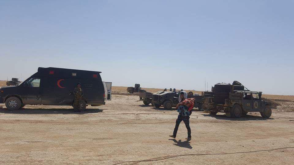 1_ نجاة كادر كتائب الاعلام الحربي وفضلاء لجنة الارشاد والتعبئة للدفاع عن عراق المقدسات التابعة للعتبة العلوية من قصف إرهابي داعش في المحور الجنوب الشرقي لمدينة تلعفر أثناء مرافقة قوات الجيش العراقي الفرقة ٩ وفرقة العباس القتالية .