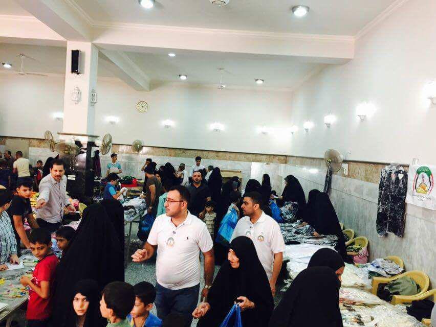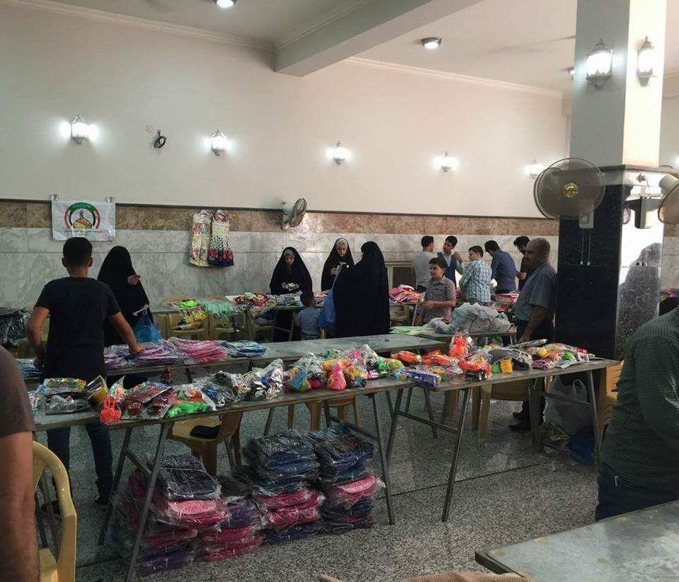 والتي تظمنت اقامة سوق مجاني للايتام من عوائل الشهداء والعوائل المتعففة في محافظة النجف الاشرف والاقضية والنواحي التابعة لها يتبضع منه الايتام وعوائلهم مايلزمهم من ملابس ولوازم مدرسية والعاب وهدايا ومبالغ مالية على شكل عيديات وكذلك توزيع السلة الغذائية التي تحتوي على الخضروات والفواكه والبقوليات والدجاج ولحوم الاضاحي والحلويات بكلفة اجمالية تصل إلى 12 مليون دينار
