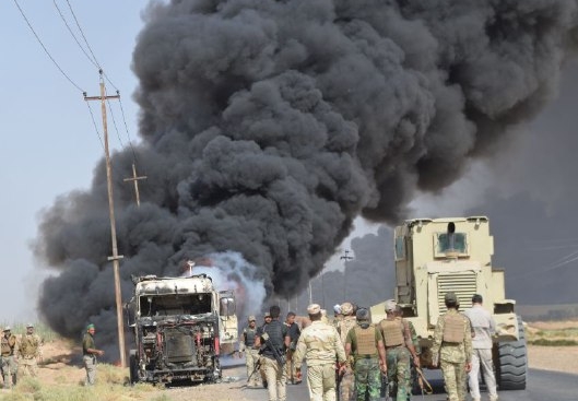 فيما لوحظ وجود شقوق باعماق كبيرة في التلال المجاورة وباعماق كبيرة تحوي حاويات كبيرة تم توجيه رتل من قواتنا البطلة باتجاه المعسكر للسيطرة عليه..بإرشاد من الطيارين والذي يقع في منطقة كيلو 160 ويبعد عن الطريق الدولي 40كم غربا وفي عمق الصحراء .