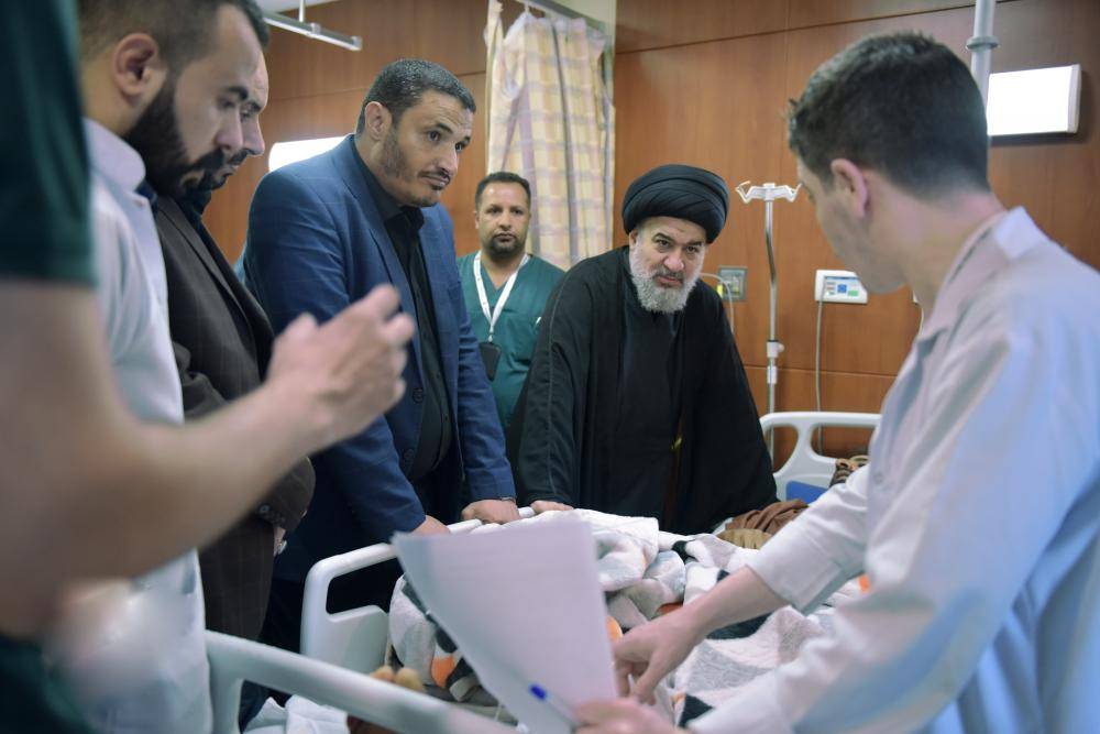 السيد الصافي يتفقد جرحى القوات الأمنية والحشد الشعبي، ويؤكد على تقديم أفضل العناية لهم بما يتلاءم وتضحياتهم