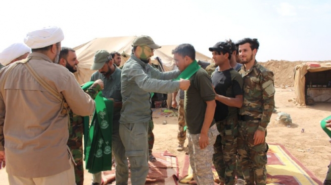 مبلغو لجنة الارشاد يشاركون قوات الحشد الشعبي في قصف مواقع العدو الارهابي على الحدود العراقية السورية