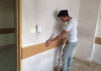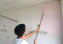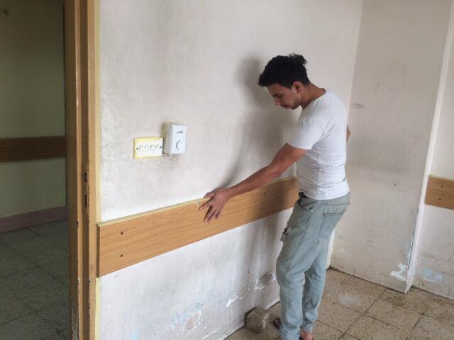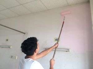 احد ابطال الحشد الشعبي يقوم بصبغ طابق في مستشفى بغداد التعليمي بعد تماثله للشفاء فيه
