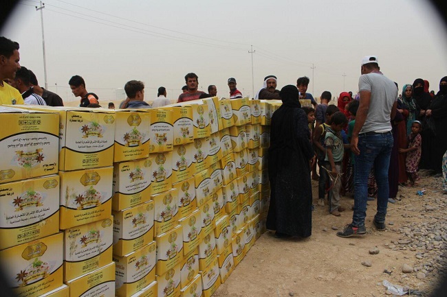 هذا ما قاله نازحوا الحويجة في مخيمات ناحية العلم في محافظة صلاح الدين خلال زيارة قامت بها لجنة الاغاثة التابعة لمكتب المرجعية العليا في النجف الاشرف وبتوجيه من المكتب لايصال 2300 سلة غذائية مقدمة من مكتب سماحة المرجع الاعلى السيد السيستاني لنازحي الحويجة يوم الثلاثاء الموافق 24/10/2017. حيث استقبل النازحون وفد مكتب المرجعية المباركة بعبارات الحفاوة والترحيب قائلين : ان مواقف سماحة السيد السيستاني هذه لايمكن ان ننساها لانها اخذت حيزا من مشاعرنا وخففت عنا محنتنا مع النزوح والتهجير وقلة المؤن الغذائية ، هذا وقد تم توزيع المساعدات الغذائية على جميع النازحين في مخيمات العلم البالغ عددها ثلاث مخيمات .