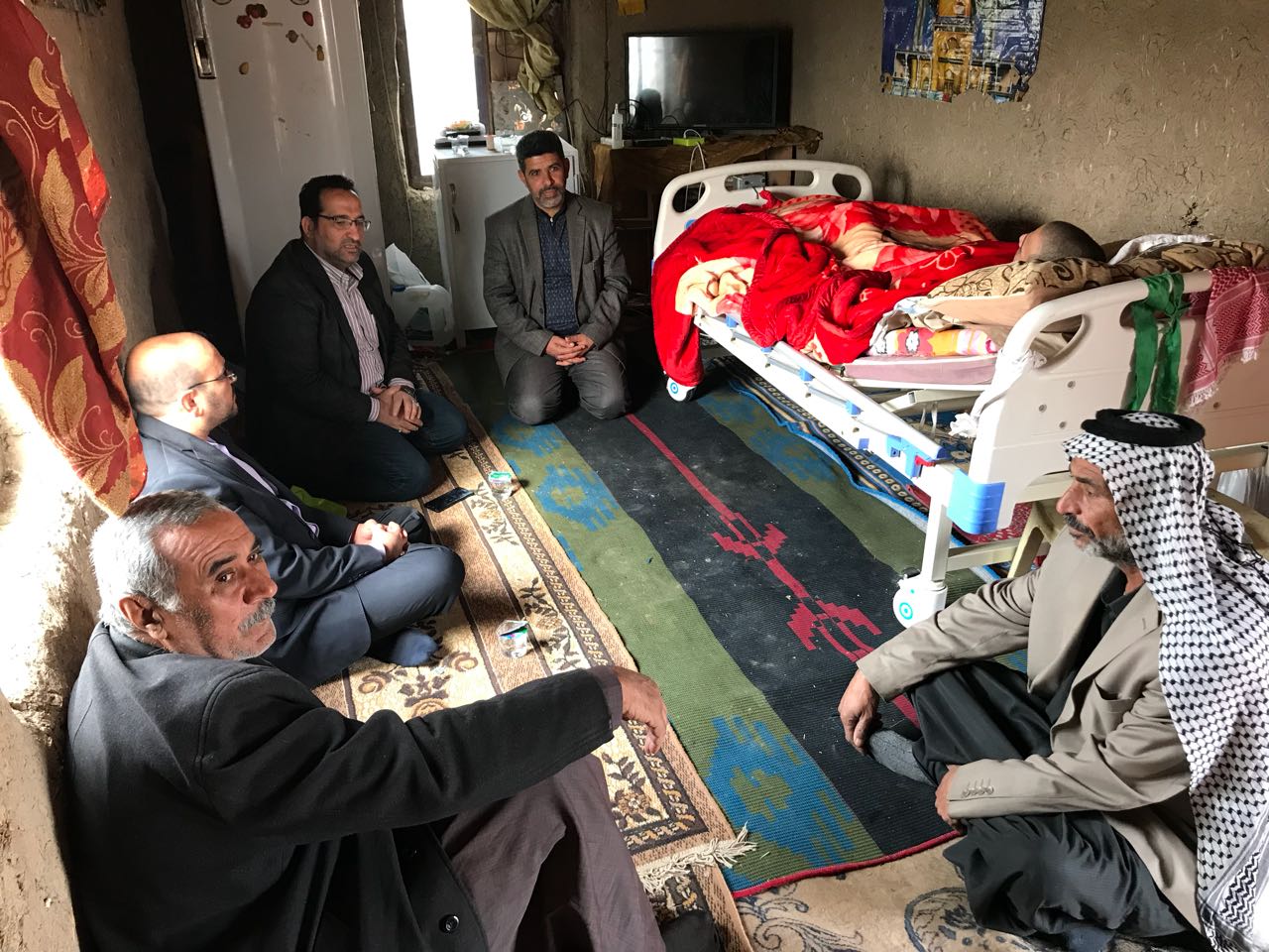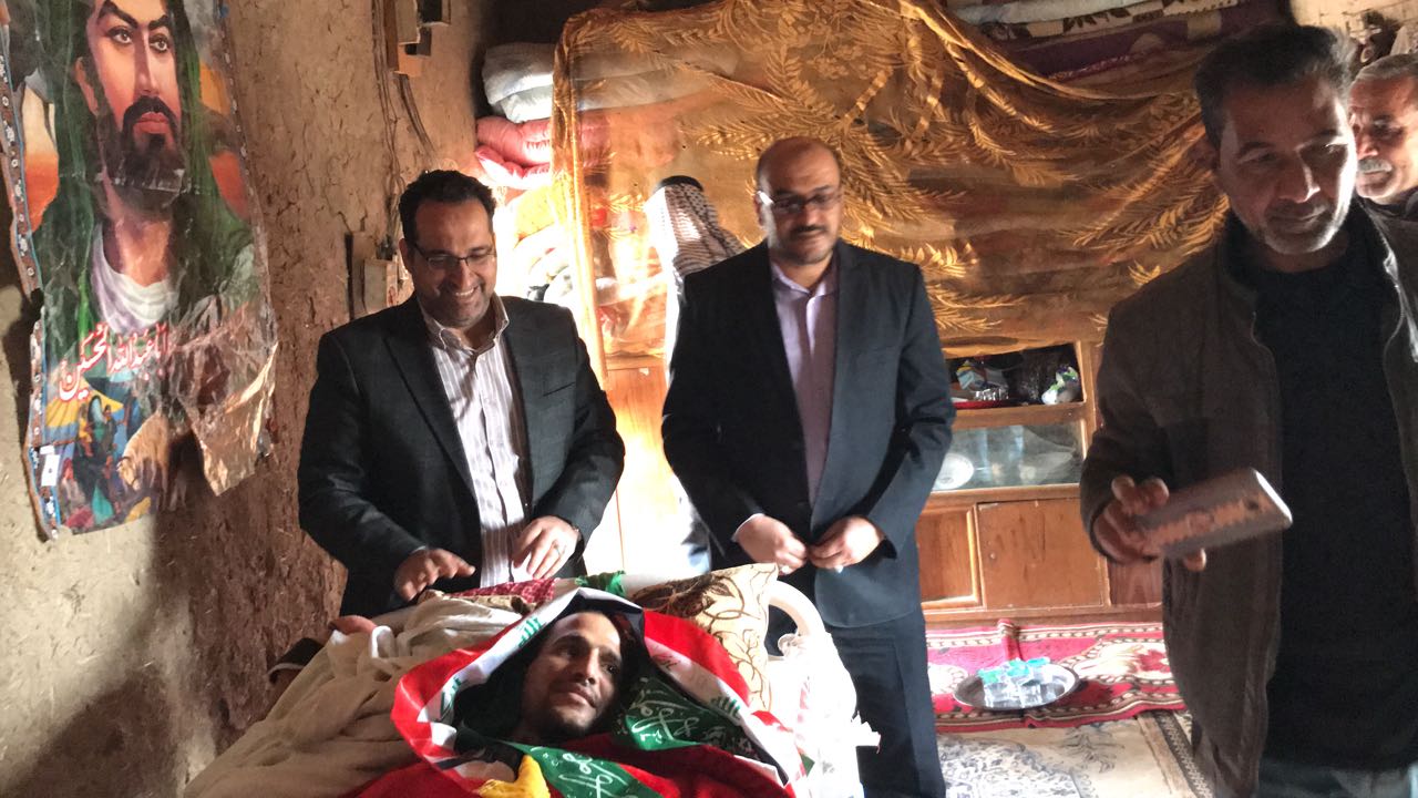 اللجنة العليا لدعم الحشد الشعبي في ديوان الوقف الشيعي تزور الجريح ضياء ضاري عبيد في ناحية ال بدير بالديوانية