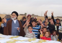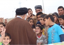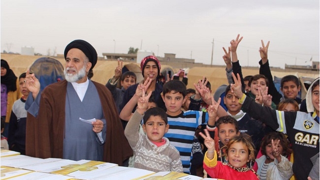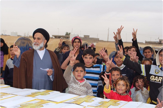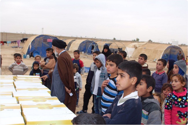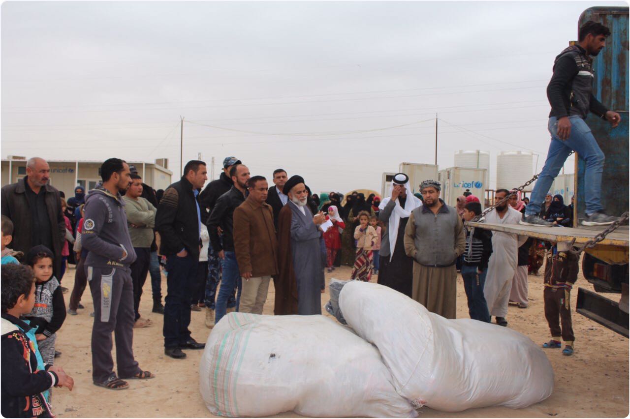 مكتب السيد السيستاني يواصل اغاثة النازحين في مخيمات الكرامة والشهامة قرب صلاح الدين