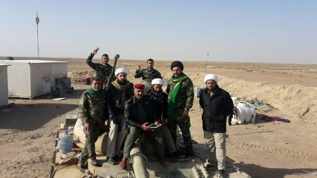 تفقد وفدا من فضلاء الحوزة العلمية في النجف الاشرف من اعضاء لجنة الإرشاد والتعبئة للدفاع عن عراق المقدسات التابعة للعتبة العلوية المقدسة قوات الحشد الشعبي في مناطق عمليات تطهير مطيبيجه شمال شرق سامراء المقدسة .
