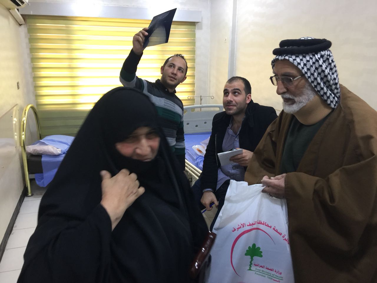 حيث يقوم الكادر المكون من اطباء اختصاص بجراحة العظام والجراحة العامة بالكشف واجراء انواع الفحوصات الطبية على جميع الحالات ، التي يتم ارسالهم من قبل اللجنة بالتعاون والتنسيق مع مستشفى الصدر التعليمي في النجف الاشرف ، وتتحمل اللجنة جميع مصاريف الفحوصات والعلاج بشكل كامل لكافة المراجعين ومن كافة المحافظات .