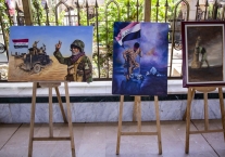 وأضاف: "كانت هناك مشاركة فنيّة للفنّانة أمينة ذياب من محافظة ذي قار، حيث اشتركت بـ(26) لوحة رسميّة شخصيّة (البورترية) لكوكبة من شهداء الحشد الشعبي".