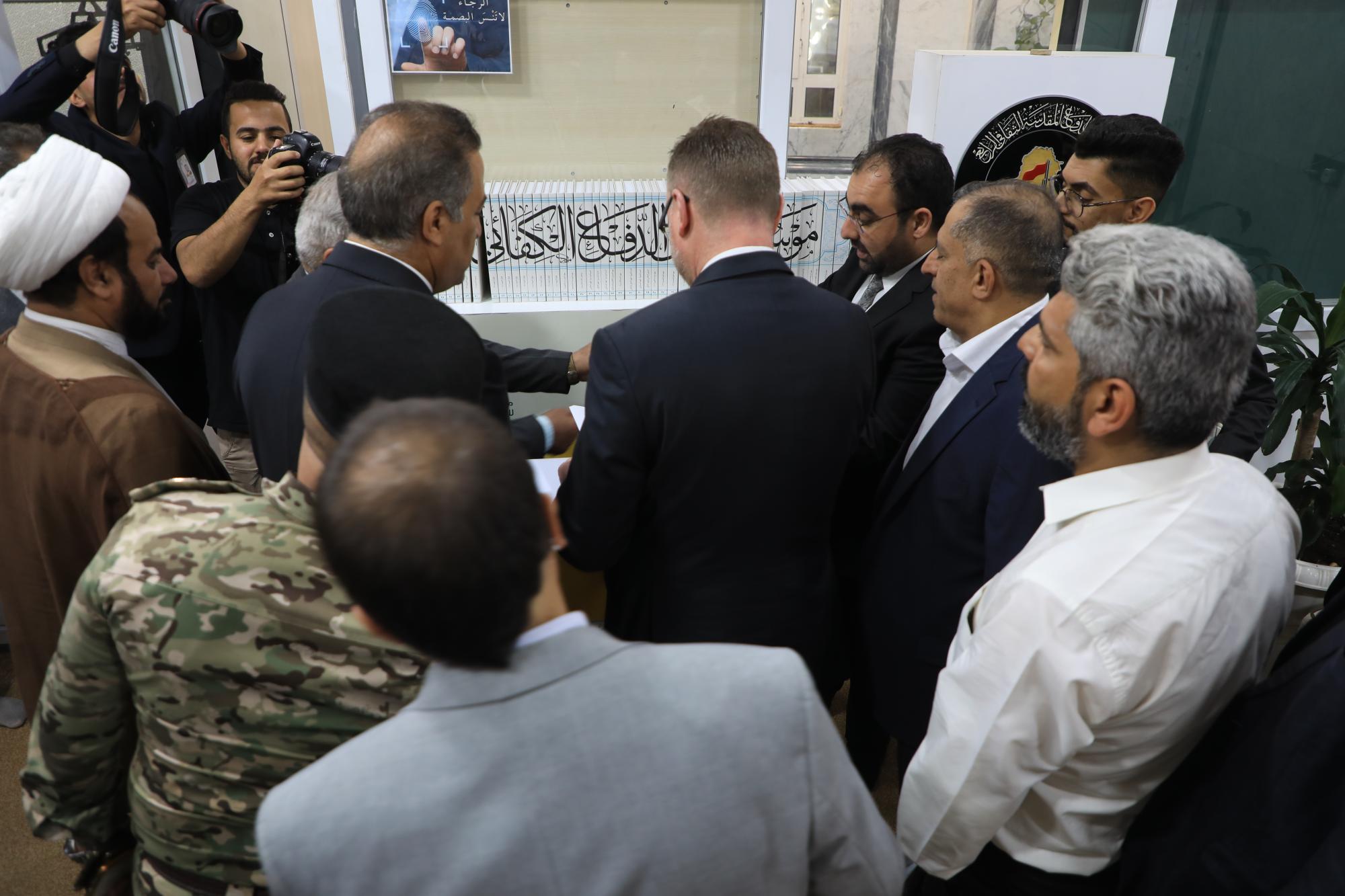وبحث الوفد الزائر برئاسة السيد كريستيان ريتشر مع المسؤولين في العتبة العباسية، سبل توثيق جرائم عصابات داعش الإرهابية.