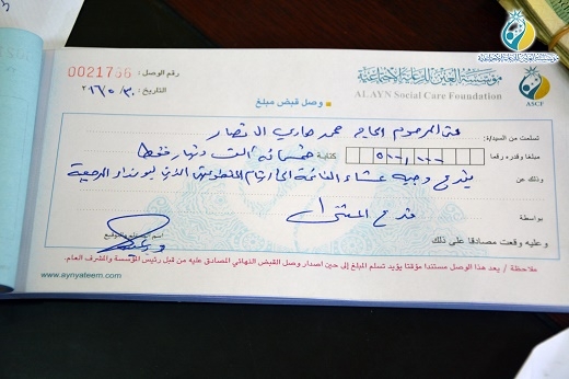 تبرعت إحدى العوائل المؤمنة من أهالي محافظة المثنى بمصاريف يوم العزاء الثالث على روح فقيدهم إلى يتامى مؤسسة العين في المحافظة ، حيث أكدت عائلة المتوفى أن هذه الخطوة جاءت إيمانا منها بالأجر المترتب جراء إعطاء الأموال إلى هذه الفئة التي حباها الله. كما وأكدت عائلة المتوفى على ضرورة تظافر الجهود كل حسب استطاعته من اجل الارتقاء بواقع يتامى المحافظة