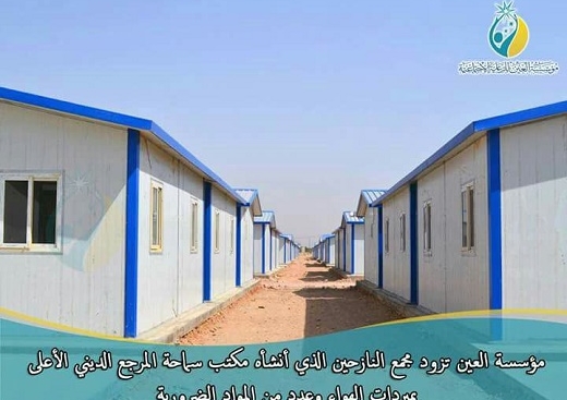 تجدر الإشارة إلى أن المجمع السكني الذي أنشأه مكتب سماحة المرجع الأعلى والذي يؤوي (300) عائلة نازحة كمرحلة أولى صمم بأحدث التصاميم الهندسية وبإشراف كوادر هندسية وفنية ذي خبرة في مجال إنشاء مثل هكذا مجمعات.