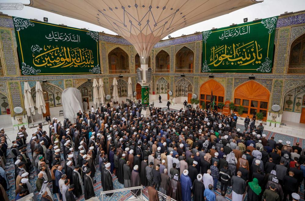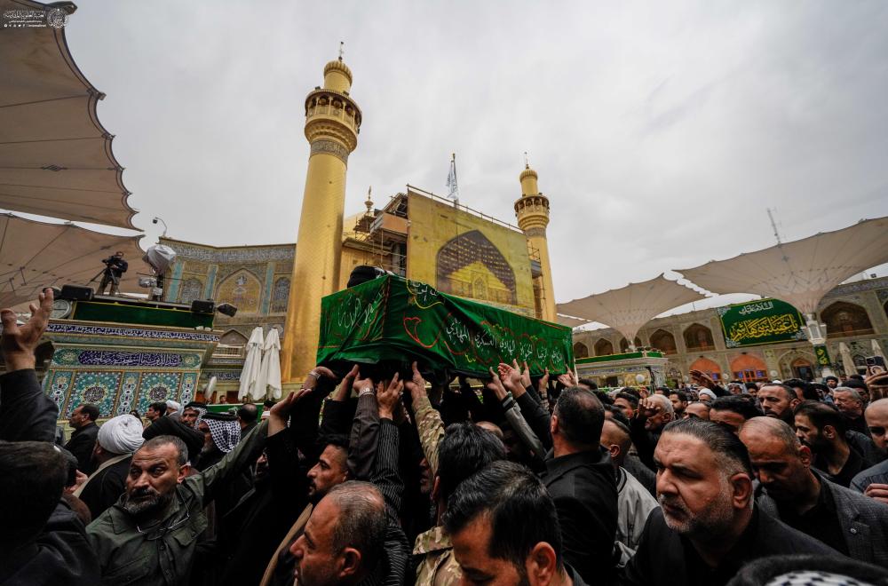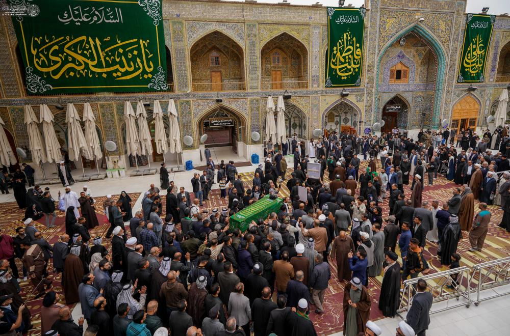 وجَرَتِ المراسِمُ بحضورِ جَمعٍ غفيرٍ من ممثِّلي مَراجعِ الدينِ العظامِ وَأَساتذةِ وطلبةِ الحوزةِ العلميَّةِ وأمناءِ وممثِّلي العتباتِ المقدسةِ والمزاراتِ الشريفةِ والنُّخبِ من مختلفِ طبقاتِ المجتمعِ الأكاديميةِ والرسميةِ والاجتماعيةِ والعشائريةِ في مدينةِ النجفِ الأشرف.